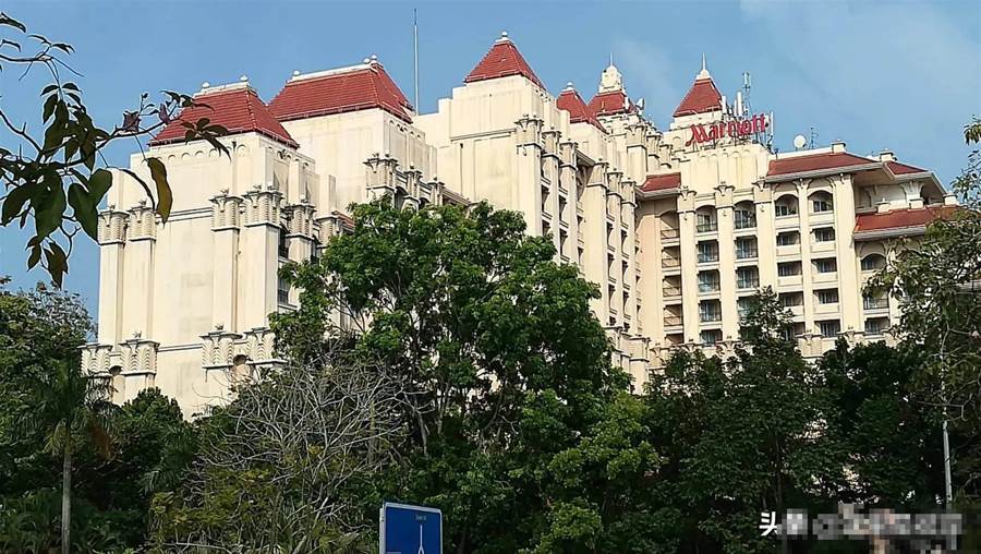 万豪酒店正门、门前长廊